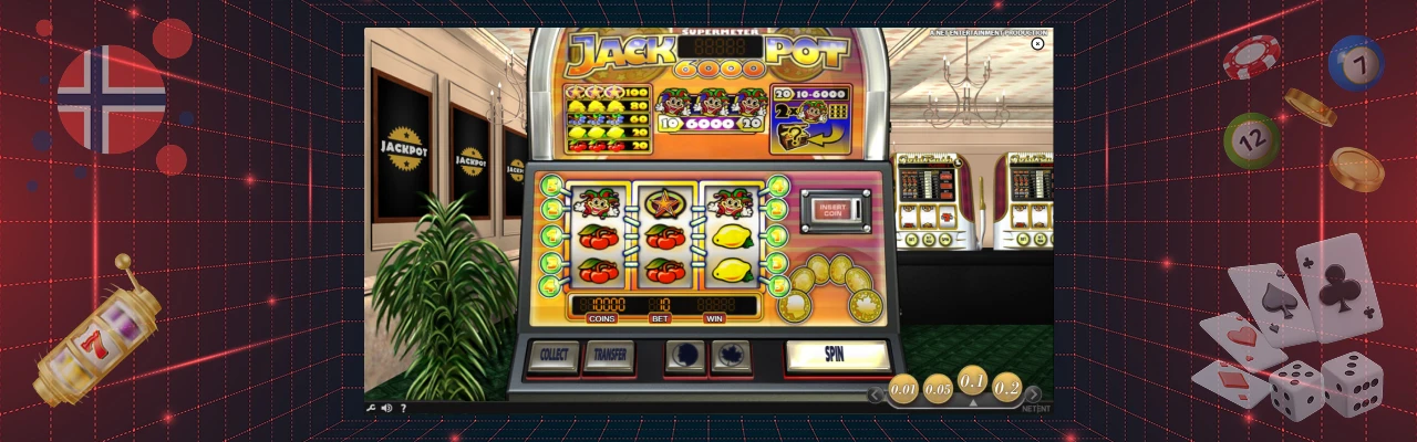 NetEnts Jackpot 6000 har en bakgrunn som få andre spilleautomater kan vise til. Spillet er den digitale videreføringen av det mange norske spillere husker som Norgesautomaten, tidligere kjent fra dagligvarebutikker, kiosker og bensinstasjoner over hele landet. Originalautomaten, ofte omtalt som Jackpot 2000, var i sin tid et fast innslag i hverdagen, og ble et kulturelt referansepunkt for en hel generasjon spillere.
